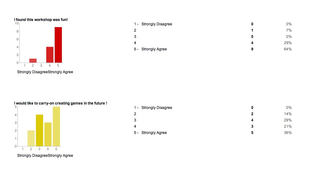- Students were extremely engaged in the creation process. They were willing to learn new concepts in order to improve their game. During the breaks, the majority of students insisted on staying in the classroom in order to work on their project.